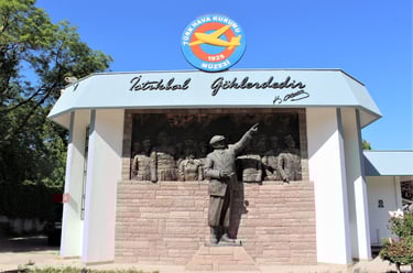 ^Anıtın sembolizmi tarihi açıdan oldukça anlamlı ve kayda değer: Sakarya isimli atı üzerinde Atatürk’ün geleceğe umutla bakan bir duruşu tasvir edilmiş. Anıtın ön kısmında iki Mehmetçik askeri, arkasında ise sırtında top mermisi taşıyan bir Türk kadını yer alıyor. Ön kısımdaki askerler ileriyi gözetliyor ve Atatürk at üstünde asil ve kendinden emin bir duruş sergiler şekilde betimlenmiş.