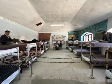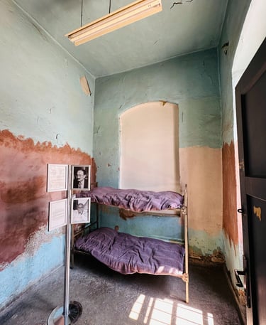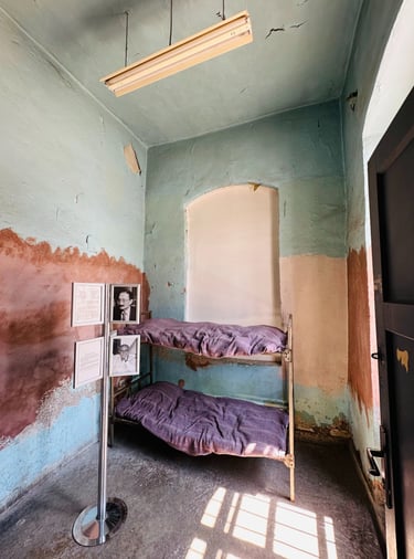 ^Aslına uygun şekilde düzenlenen cezaevi koğuşlarına ve tecrit odalarına balmumundan mahkum heykelleri yerleştirilmiş. Ancak, müzede beni en çok sarsan oda tecrit odaları oldu:Müzenin koridorlardaki hoparlörlerinden tecrit odalarındaki işkenceleri yansıtan çığlık sesleri yankılanıyor ki bu seslerin bir süre sonra zihninizde sürekli dönüp duran bir fon sesi gibi devam etmesini önleyebilmek için buraya girmeden önce sinirlerinizi çelik gibi sağlamlaştırın derim.