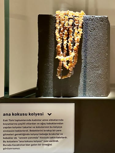 Kazakistan'dan ana kokusu kolyesi - Anneler bebeklerini bırakıp bir yere gitmeleri gerektiğinde bu kolyeyi bebeğe bırakırlarmış ve bebekler de annem yanımda hissine kapılıp sakin kalırlarmış. Bu kolyelere "ana kokusu kolyesi" ismi verilirmiş.