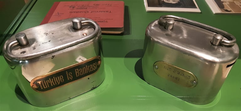 ^Müzede sergilenen birbirinden değerli eserlerden en çok ilgimi çekenler kumbaralar oldu. Bunun nedeni ise tasarrufun sembolü ve ilk adımı olan maden kumbaralarla ilgili yürütülen tüm tanıtım faaliyetlerinin bir millete tasarruf bilincini oturtmaya çalışırken bunu hem rasyonel hem de yaratıcı bir zemine oturtarak sergilemenin bir millete iktisadi kalkınmanın bağımsızlığa giden yolda madalyonun diğer yüzü olduğunu anlatmanın en güçlü yöntemlerinden biri olduğunu hissettirmesi oldu. İlk kez 1928'de İş Bankası sayesinde gün yüzüne çıkan bu kumbaralar sayesinde her ailenin bir "İş Bankası Kumbarası"na sahip olması özendirilmiş ve başta çocuklar olmak üzere toplumun tüm kesimiyle İş Bankası arasındaki bağ bu sayede kurulmuştu.