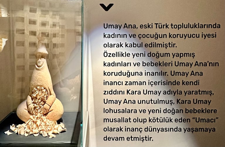 Hasanoğlan Heykelciği: Hamile kadın, hamile olduğunu öğrendiği andan itibaren içgüdüsel olarak elini karnına koymaya başlar ve bunun temelinde bebeğinin varlığını hissetme duygusu yatar. Hasanoğlan mezarlığında bulunan Erken Tunç Çağı'na ait bu heykelcikte dahi bir kadının iki elini birden karnına koyduğunu görebiliyoruz.